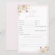 Invités Invitations à partager leurs meilleures suppositions et des conseils sincères avec ces "Baby in Bloom" Blush Pink Floral Baby Prédictions et cartes de conseil. Fleurs délicates d'aquarelle et tons doux et roux, ces cartes sont un souvenir doux et sentimental pour la future maman. Parfait pour recueillir des souvenirs et de la sagesse pendant votre douche!