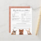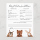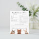 Thème Whimsical bois baby shower prédictions bébé et carte de conseil illustrant un raton laveur, renard, cerf, hibou, ours et lapin. Conception neutre pour le genre. Les textes sont modifiables. Un jeu parfait à jouer pendant la douche et sera certainement un grand gardien! La carte demande aux invités de prédire à quoi ressemblerait le bébé.
