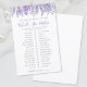 Elégante Aquarelle Lavande Fête des mariées Florale Voudrait Elle Plutôt Jouer. Ajoutez un peu de plaisir à votre douche nuptiale avec cette activité ludique où les invités essaient de deviner quelle option la future mariée choisirait. C’est un moyen léger de célébrer tout en faisant participer et divertir tout le monde. Le design se compose d'un jardin lilas et lavande aquarellé avec des tiges dans les tons violets et feuilles verts frais. Les fleurs coulent gracieusement le long du sommet, donnant à la carte de jeu une touche moderne et fantaisiste. Un mélange de polices serif classiques et d'élégantes typographies de script rend le jeu élégant mais facile à lire. Entièrement personnalisable, vous pouvez modifier les questions, les couleurs de police et l'arrière - plan pour correspondre à votre thème de douche nuptiale. Cette activité ajoute un détail charmant et personnel à toute célébration.