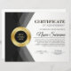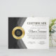 Modèle professionnel moderne noir & or certificat de réussite de la flyer avec une médaille d'or sur "certificat", noir et or avec design feuille, et un arrière - plan gris doux. Customisez à votre goût.