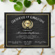 Couronne classique, traditionnelle et élégante avec effet noir et or avec sceau personnalisable certificat d'achèvement. Format de lettre papier Certificat d'achèvement de 8,5"x11" décerné aux étudiants, aux employés ou à toute personne pour avoir terminé un cours, une école, une formation ou un programme d'éducation. Ajoutez votre logo ou votre nom d'entreprise. Idéal pour tout domaine de carrière ou d'emploi utilisation de l'industrie... diplôme d'école de cosmétologie, barbier, technicien automobile, consultant, technologie ou tout domaine d'études. Conception personnalisée dans un bel motif de style métal noir arrière - plan avec des cadres dorés. Récompensez les efforts de vos étudiants et de votre personnel avec ce certificat personnalisé et personnalisé. Customisez votre propre texte en ligne, et commandez des certificats personnalisés pour votre diplôme ou cérémonie de remise des prix. Vous pouvez taper le nom du destinataire ou laisser la ligne vide pour ajouter un stylo à encre blanche ou à encre gel.