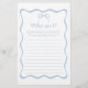 Ajoutez une torsion amusante à vos jeux de douche nuptiale avec cette Personnalisée Quelque chose de bleu Bow Fête des mariées Devinez qui Jeu! Idéal pour lier le thème de la douche nuptiale de noeud, c’est un choix idéal pour cravate les idées de douche nuptiale de noeud et s’intègre parfaitement dans quelque chose de bleu douche nuptiale. Avec un thème classique de douche nuptiale bleue quelque chose, c’est l’ajout parfait à toute douche nuptiale bleue ou à toute idée de douche nuptiale bleue. Ce jeu apporte du charme à votre douche nuptiale bleue, ajoutant du plaisir à quelque chose de bleu avant de faire thème douche!