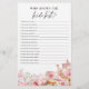 Célébrez la future mariée avec ce jeu de douche à thé floral Who Knows the Bride Best. Une façon amusante et élégante de tester les connaissances des clients et de créer des moments inoubliables à votre fête.