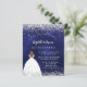 Une invitation moderne, élégante et glamour pour une Quinceañera, 15ème anniversaire. Un arrière - plan bleu marine avec des confettis, une fille portant une robe de bal. La couleur bleue est inégale. Le nom est écrit avec un script de style moderne écrit à la main. Personnalisez et ajoutez les détails de votre fête. 1 feuille = 1 invite imprimé bord à bord.