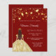 Papier Quinceanera robe rouge or étoiles invitation