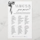 Tout aussi chic et divertissant, What’s In Your Purse? est un délicieux ajout à toute douche nuptiale, célébration fiançailles ou rassemblement de filles. Avec son design poli avec une illustration d'arc noir raffinée, ce jeu transforme l'essentiel du sac à main quotidien en un défi amusant et léger. Les clients adoreront découvrir les trésors inattendus cachés dans leur sac à main, des points de gain pour tout, du pratique à l'absolument surprenant. Conçu pour une expérience événementielle surélevée, ce jeu se fond harmonieusement dans n'importe quel thème de douche nuptiale, de l'élégance intemporelle au minimalisme moderne. Qu'il soit utilisé comme brise-glace ou comme complément animé à un après-midi festif, il garantit le rire et les moments partagés. Pour des designs assortis, des altérations sur mesure ou des teintes alternatives, le concepteur est ravi de donner vie à votre vision. Copyright Anastasia Surridge, tous droits réservés.