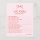 Delight your guests with this red and pink hand drawn bow Who Knows the Bride Best game, perfect for a Christmas bridal shower, winter wedding shower, or festive holiday celebration. This cheerful quiz adds warmth and fun to a merry little bridal shower, blending cute seasonal style with charming bow details. Ideal for winter brides, cozy gatherings, and holiday-inspired parties looking for a playful, easy activity everyone can enjoy.