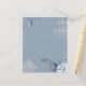 Couleurs et éléments bleu et gris poussiéreux avec rose, branche d'eucalyptus et serpentins.
