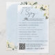 Encouragez vos invités à vous aider à capturer chaque moment inoubliable avec cet élégant panneau de jeu Mariage I Spy. Conçu avec un bleu doux arrière - plan et des roses blanches délicates, ce panneau invitations amis et famille pour prendre des photos et des vidéos de moments spéciaux tout au long de votre grande journée. Les clients peuvent simplement cliquer sur le code QR et télécharger leurs souvenirs, car l'amour est encore plus doux lorsqu'on le voit à travers les yeux de vos préférés. Le libellé comprend : "Capture the Love - S'il vous plaît prendre des photos et des vidéos de tous les moments spéciaux que vous voyez. Cliquez sur le code QR pour télécharger et nous aider à nous souvenir du jour à travers vos yeux!" Parfait pour l'affichage près de votre livre d'hôtes, de votre table d'accueil ou de votre réception.