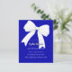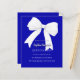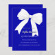 Arrière - plan de couleur bleu roi, décoré d'un grand arc blanc. Personnalisez et ajoutez un nom et des détails du parti. 1 feuille = 1 invite imprimé bord à bord.