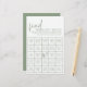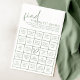 Faites de votre douche nuptiale se démarquer avec le jeu sophistiqué Sage and White Fête des mariées Guest Bingo Game. Ce jeu de bingo intemporel est l'ajout parfait à vos festivités de douche nuptiale. Avec sa sauge moderne et son esthétique blanche, il s'inscrit parfaitement dans un décor élégant ou minimaliste. Les clients aimeront l'expérience interactive de jouer et d'essayer de remplir leurs cartes, ajoutant une couche supplémentaire d'excitation à la célébration.