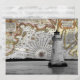 Paysage nautique avec phare et carte vintage.
