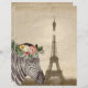 Vintage teinte sépia photo arrière - plan de la Tour Eiffel avec superposition d'une belle aquarelle portrait zèbre à couronne florale