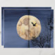 Un ciel bleu de minuit avec une énorme pleine lune jaune et des silhouettes d'arbres et de hiboux en vol. Ce papier pour scrapbooking est parfait pour les journaux sombres, les grimoires, le Livre des Ombres et les créations sauvages ou forestières, ce motif a un style de double page, il suffit donc de plier pour créer deux pages. L'image arrière est bleu foncé sans graphiques pour que vous puissiez ajouter vos propres collages de papier et chutes.