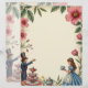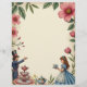 Perdez-vous dans un thé fantaisiste avec ce papier ravissant mettant en vedette Alice et le Chapelier Fou. Il montre Alice tenant une tasse à thé et le Chapelier Fou faisant un geste vers un présentoir à tasses à thé à étages, encadré par une belle bordure de grandes fleurs roses. Avec des possibilités créatives infinies, ce papier est parfait pour les invitations, le scrapbooking, le journaling et d'autres projets personnalisés. Imprimé en haute qualité, en couleur pleine sur un papier mat mince, il est conçu pour donner un aspect net et professionnel à vos envois personnels ou professionnels. Ajoutez des photos et du texte personnels sans supplément, ce qui en fait un ajout polyvalent et mémorable à tout projet.