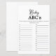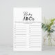 Quel objet bébé commence par chaque lettre ? La première personne à compléter la liste gagne ! Un jeu de baby shower gai avec un récit basique.
