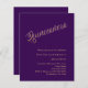 Une invitation moderne de Quinceañera. Un arrière - plan violet et le mot Quinceañera écrit avec de grandes lettres. Personnalisez et ajoutez un nom et des détails du parti. 1 feuille = 1 invite imprimé bord à bord.