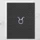 Un signe du zodiaque Taureau chromé argenté sur fond texturé en fibre de carbone noire. Un design urbain moderne et branché pour une excellente idée de cadeau personnalisé.
