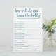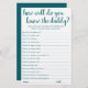 "Connais-Tu Bien Papa ?" Qui connaît le mieux le futur père ? Un simple baby shower de gardien ou de genre révèle un jeu de fête avec un script amusant et décontracté écrit à la main. Le design classique comprend une superposition de la typographie de citation à la main moderne. Pour d'autres couleurs ou produits correspondants, veuillez visiter le magasin JustFharryn Zazzle, ou contacter le concepteur, c/o Fharryn@yahoo.com Tous droits réservés. #bohochic #zazzlemade"