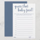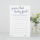 Simple "Devinez que la nourriture pour bébé" baby shower ou genre révèle une carte de jeu de devinettes de fête avec un script amusant et décontracté écrit à la main. Le design classique comprend une superposition de la typographie de citation à la main moderne. Pour d'autres couleurs ou produits correspondants, veuillez visiter le magasin JustFharryn Zazzle, ou contacter le concepteur, c/o Fharryn@yahoo.com Tous droits réservés. #bohochic #zazzlemade