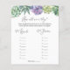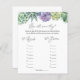 Carte de jeu de douche nuptiale avec une aquarelle vert et violet succulents. Une façon amusante d'interagir avec les invités de douche pour deviner l'âge de la mariée et du marié dans les photos. Ajoutez un code QR pour montrer les photos aux invités.