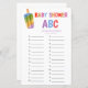 Summer Popsicle Baby Shower Game ABC Cette Baby Shower Game Card complète ma jolie collection "Popsicle Ice Cream Summer Party" Baby Shower. Vous trouverez l'Invitation, les Inserts, les Signes et les articles correspondants dans ma boutique Zazzle.