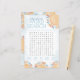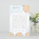 Vous recherchez un jeu de baby shower sur le thème du soleil ? Ne cherchez plus ! Ce jeu de recherche de mots de baby shower ensoleillé est l'activité parfaite pour divertir vos invités. Ce thème d'été est parfait pour n'importe quel genre, garçon ou fille, avec des tons relaxants de bleu, orange et jaune. Personnalisez tout le texte afin de répondre à votre événement. Cette collection contient des invitations, des cartes de remerciement, des insertions, des jeux et des décorations pour tous vos besoins d'événements! Pour modifier avec vos détails d'événement, cliquez sur "Personnaliser" ou "Détails", puis supprimez le texte prérempli et remplacez-le par le vôtre. N'hésitez pas à nous contacter si vous avez des questions.