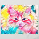 Papier Tabby Design Chat rose Jaune Design d'art Turquois