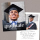 Une faire-part moderne de graduation et une invitation à la fête qui met en vedette la photo de votre grand-père superposée avec "Graduate" dans un grand texte blanc tendance et leur nom, l'école et l'année de classe dans une simple typographie blanche. Au verso, ajoutez une photo supplémentaire et les détails de la grande fête.