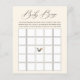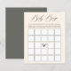 Elégante signature calligraphie "Baby Bingo" graphique, feuille de jeu de baby shower. Boho-chic baleine, lune et étoiles illustrées avec coordination rustique fond gris.