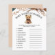 Papier Thème de l'ours rustique Baby shower de mots Jeu d