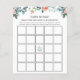 Carte de bingo baby shower avec cascade d'aquarelle de verdure et de fleurs roses avec une théière à l'espace libre. Une façon amusante d'interagir avec les invités de douche pendant que la maman-to-be ouvre ses cadeaux à son baby shower.