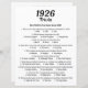 Papier Trivia Game 1926 | 99e fête d'anniversaire
