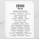 Papier Trivia Game 1986 | 39e fête d'anniversaire