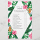 Tropical Palms Aquarelle Nuptiale invitation douche. Le design comprend un élégant bouquet d'aquarelle de plage classique, de la verdure et des fleurs, dont l'hibiscus rose vif, l'oiseau orange et bleu du paradis, la verdure verte et la feuille de palmier vert foncé.