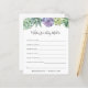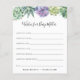 Demandez aux clients de la douche de remplir ces adorables souhaits pour les cartes bébé à votre baby shower. Doté d'aquarelle vert et violet succulents. Personnalisez le avec le nom et la date de la douche de maman.