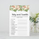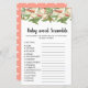 un thème de pêche douce comprend des braches de pêche mignonnes, une carte de mots pour le baby shower Les mots sur cette carte sont tous liés aux bébés et ont été brouillés. Les invités se disputeront pour voir qui pourra les débrouiller en premier ! RÉPONSE CLÉ : 1. siège de voiture; 2. lait 3. stylo 4. sucette Le cinquième article est une chaise à bascule. 7. garderie 8. surveillance de bébé; 9. enrouler 10. formule. 11. canard en caoutchouc 12. poussette. 13. surveillance. 14. ensemble. 15. Thermomètre.