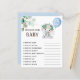 Papier Voeux pour bébé | jeu Baby shower éléphant garçon