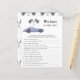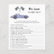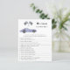 Carte d'invitation de baby shower sur le thème de la voiture de course avec des illustrations à l'aquarelle d'une voiture vintage violette (violet) et un drapeau de course noir et blanc. "Continuez à courir pour une baby shower."