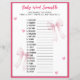 Papier Word Scramble Baby Shower Game Pink Bow Ribbon