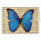 Papillon de Morpho sur la carte vierge d'écriture