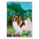 Origineel kunstontwerp van een Papillon-hond in een vlindertuin, door illustrator/ontwerper Carolyn McFann, over T-shirts van hoge kwaliteit, kaarten, muismatten en nog veel meer voor speelgoed-katoenliefhebbers.