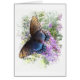 Papillon noir sur fleur violette avec carte blanche arrière - plan grunge.