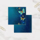 Or volant, papillon bijoux sur arrière - plan textuel bleu. Conception avec papillons.