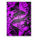 Ces caractéristiques de conception pourpres et noires de yang de yin deux ont stylisé des papillons. Les remous débordants et le feuille entourent les papillons tandis qu'un rose simple apparaît de chaque côté. Les points culminants subtils apparaissent sur ce motif attirant qui crée un éclat léger et une texture riche sur la surface. Cette conception unique de yang de yin fait un amusement et une carte élégante.