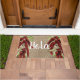 rode peper met een Spaanse tekst "Hola" doormat met een nostalgisch gevoel en een boeiende achtergrond. Ontwerp door Alma Wad,