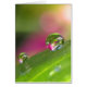 La belle, vibrante macro photographie des gouttelettes d'eau sur une petite feuille, réfractant fleurit à l'arrière-plan.