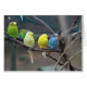 Heldere, kleurrijke wilde vogels foto - Helderneongroen, geel en waterblauw Australische paraketten, liefdevol met de bijnaam Budgies of keets door huiseigenaars en vogelliefhebbers, zijn in de takken doordrenkt. Officiële soortnaam is boedgerigar, de gewone dierenparkiet of schelpparkiet. Net als Quaker Parrots of Monk Parakeets. Perfect geschenk voor natuurfotografie voor vogelliefhebbers, boegenaars en dierenvrienden.