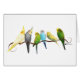 Een groep schattige kleine paraketten en cockatieltjes, op een baard zitten:)