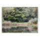 Pardonne-moi carte avec un beau cadre verdoyant et un banc solitaire au bord de l'eau.